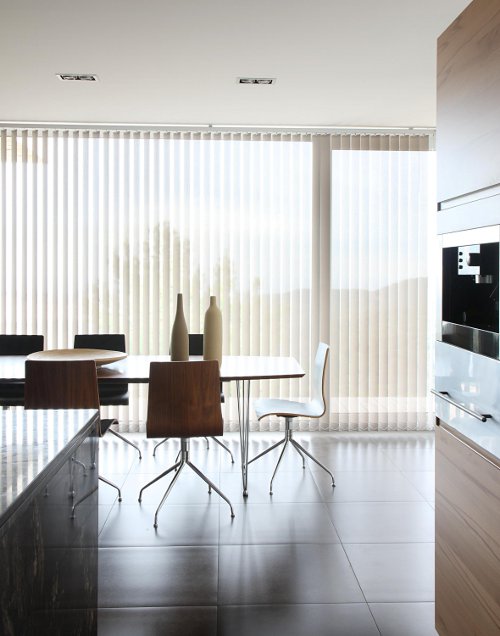 Nel residenziale consigliamo la tenda a strisce verticali in ambienti con un arredamento moderno (cucina, soggiorno, bagno, studio).